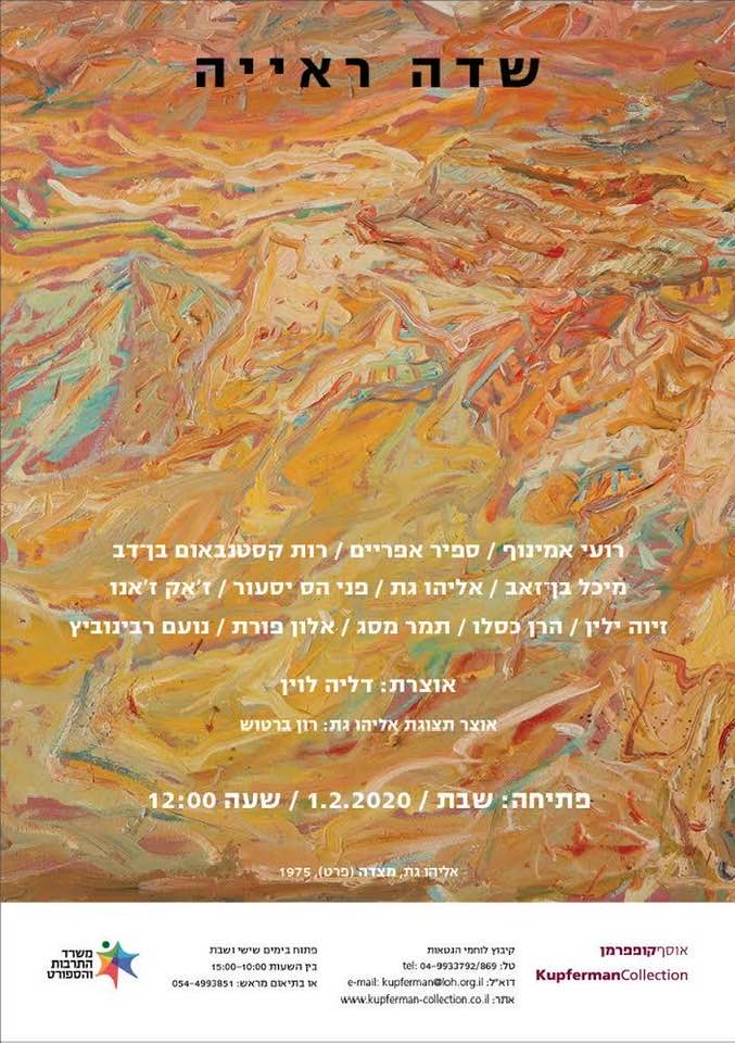 I will be showing paintings from my recent series, Land of Painting, in the group show Field of Vision, curated by Dalia Levin and focusing on various approaches to the landscape. Opening February 1, 2020 at 12:00 PM at the Kupferman Collection, a small museum built around the studio of painter Moshe Kupferman at Kibbutz Lohamei Hagetaot.