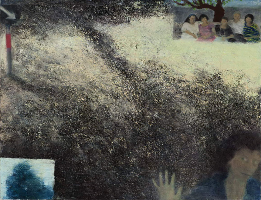 בחרתי להתחיל את הכתיבה כאן עם ציור זה מ-1990, מכיוון שהוא מייצג עבורי גם סוג של התחלה. סיימתי את לימודיי בבצלאל ב-1986, והשנים שלאחר מכן היו, כמו להרבה בוגרים של בתי ספר לאמנות, שנים של תהייה על המשך הדרך. איך להמשיך עם הציור? איך להתפרנס לצד עיסוק זה, או אולי מתוך עיסוק זה? נדרשת מידה של התעקשות למצוא מקום וזמן לציור בשנים ראשונות אלה, להתחייב להמשיך ליצור גם אם התוצאה לא ממש מעניינת אף אחד (מה שנכון במידה מסוימת עד היום).