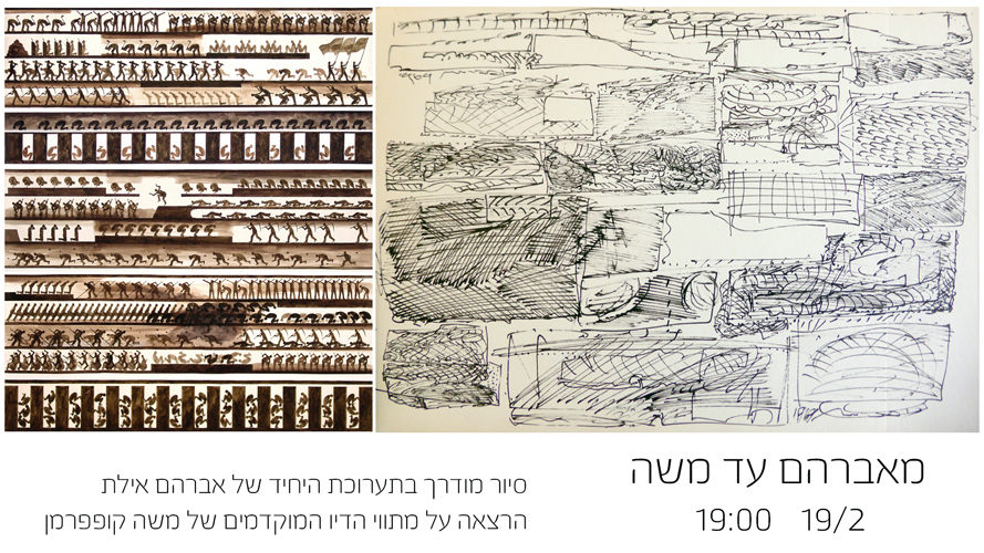 הקוביה מזמינה אתכם לערב מיוחד בתערוכת היחיד של אברהם אילת, ביום שלישי, 19 בפברואר בשעה 19:00. נתחיל בסיור מודרך עם אוצר התערוכה דן אורימיאן שיספר על תהליך העבודה ועל גופי העבודות השונים המוצגים בה. בשעה 19:30 נתכנס להרצאה 'מנוף לחתימה' מאת הציירת רות קסטנבאום בן-דב, שתעסוק במתווי הדיו המוקדמים של משה קופפרמן. במסגרת ההרצאה כמו גם בסיור – נעמוד על ייחודו של ספר הסקיצות כאתר ניסויים פרטי של האמן המעניק הצצה אל מאחורי הקלעים של יצירתו, ונבחן את כוחו ורבגוניותו של מדיום הדיו, חומר פשוט רק לכאורה.