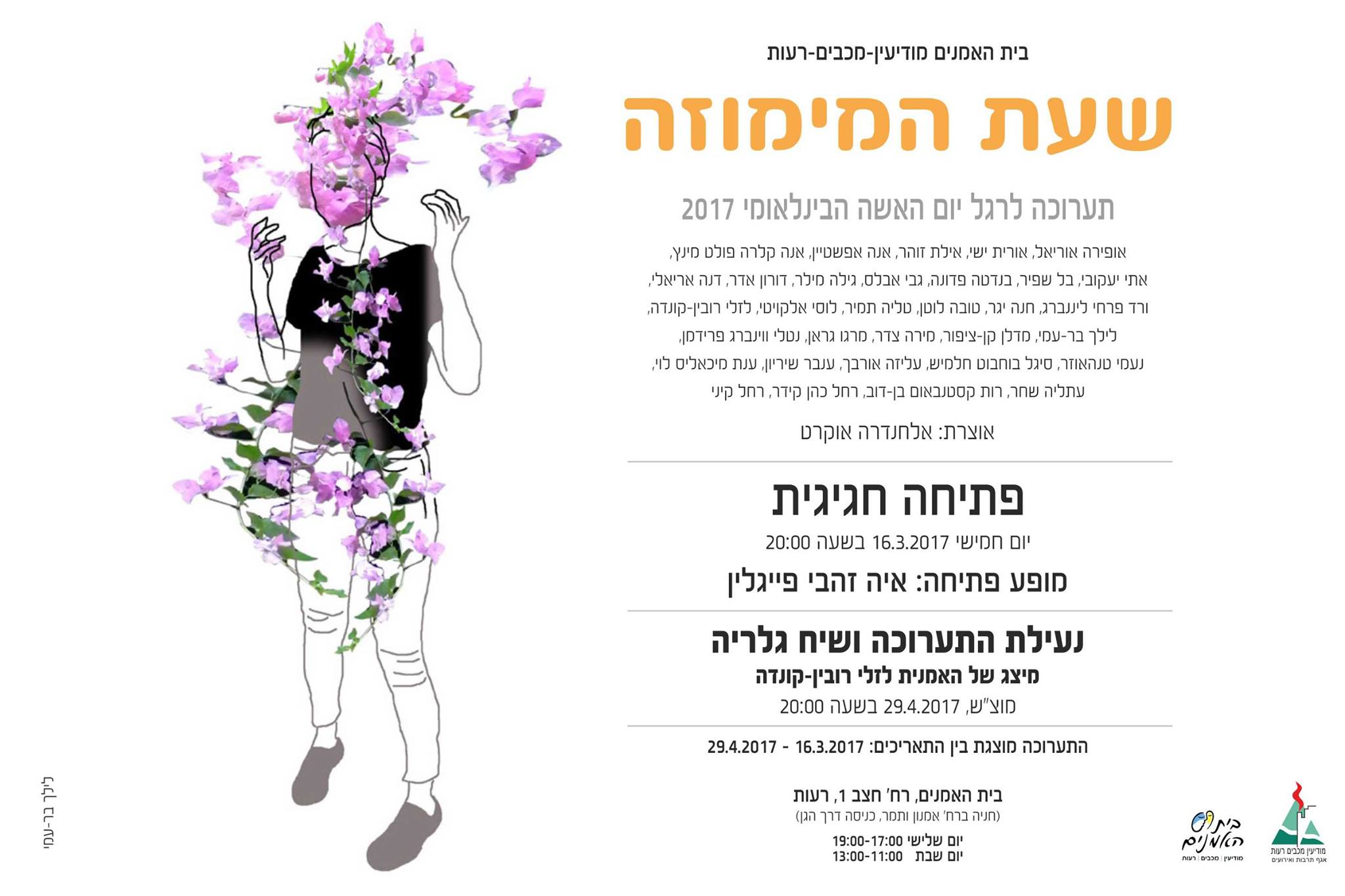 באיטליה חוגגים את יום האישה הבינלאומי על-ידי חלוקת פרחי מימוזה לנשים. תערוכה זו פונה לרגעים הקטנים בחייה של האישה היוצרים את חזונה. במקורות היהודיים "האישה פטורה ממצוות שהזמן גרמן", מצוות המוגבלות לזמן ומועד מסוים. בעידן העכשווי, האתגר המשמעותי של האישה הוא לנכס לעצמה את הזמן כמרכיב דינמי המעצב את אישיותה ואת המשמעות בחייה. התערוכה בוחנת מקרוב את אותן שעות ורגעים קטנים המעצימים אותה. התערוכה מתכתבת עם הסרט "השעות" של הבמאי סטיבן דלדרי ועם "ספר השעות" שנכתב ועוטר בימי הבינייים על-ידי האחים לימבורג. מתוך טקסט האוצרת אלחנדרה אוקרט