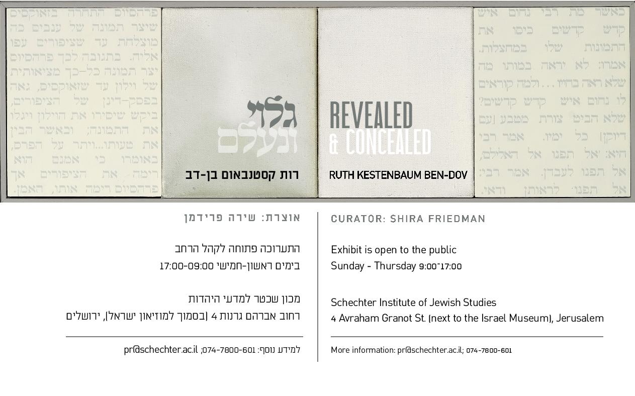 תערוכה במכון שכטר יוני-נובמבר 2016