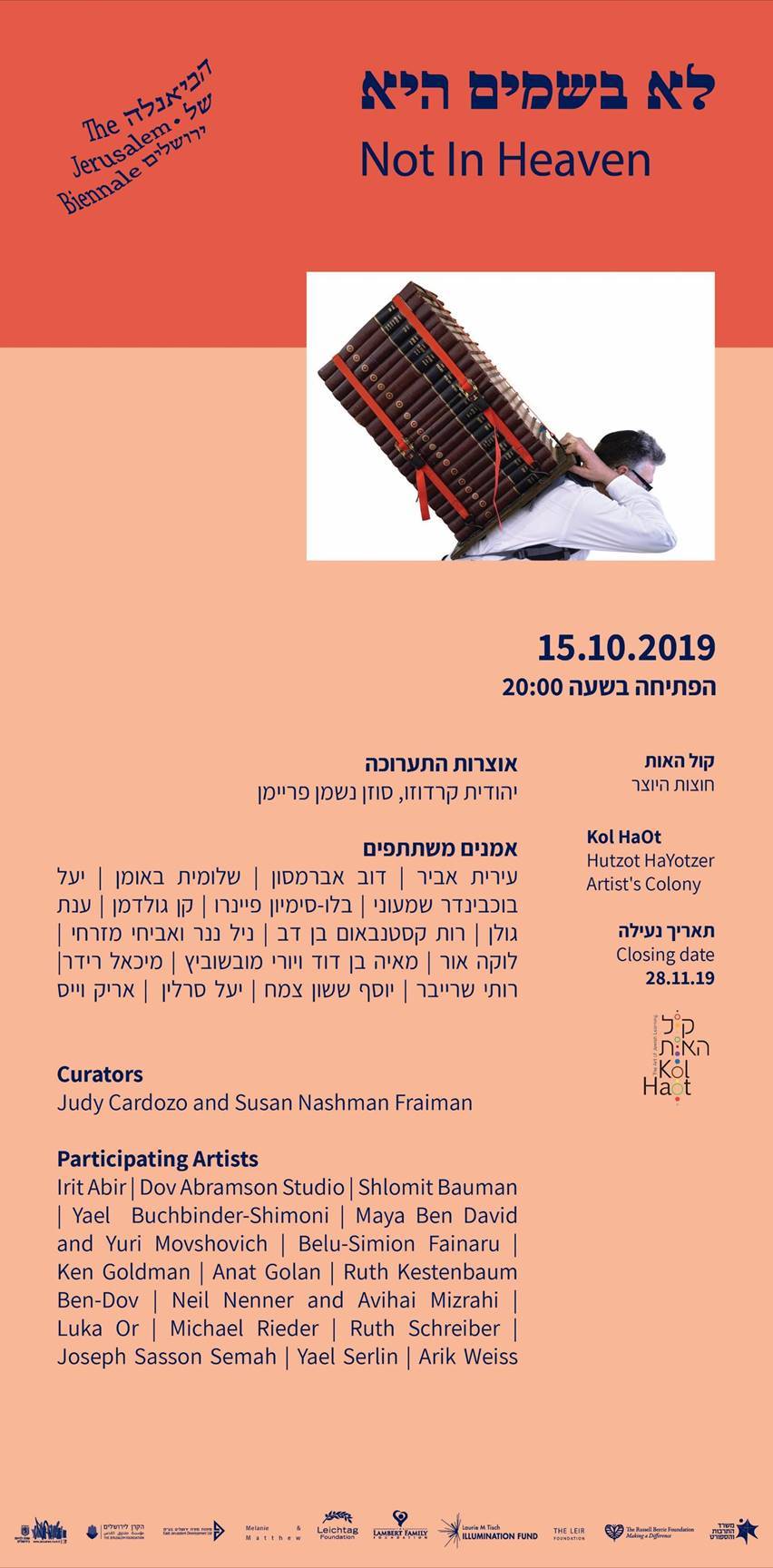 Not in Heaven group exhibition, part of the Jerusalem Bienalle for contemporary Jewish art.